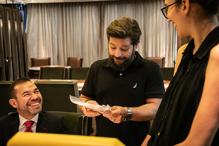 The scientists and chef got together one morning in Koli’s dining room before opening hours. Rivera-Rio had created two dishes for them that morning: one using the product from Forma Foods, the other using beef from a cow.