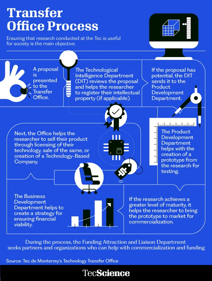Tec de Monterrey’s TTO helps researchers turn their work into technology-based companies, prototypes and products that can prove themselves in the marketplace or be licensed to companies who need these solutions.