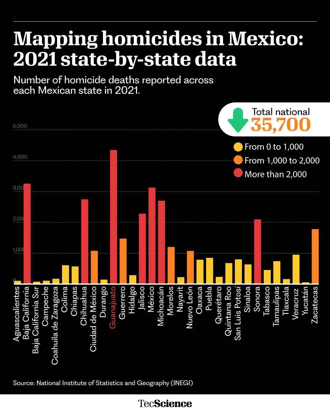 Since 2015, the country’s organized crime rate has increased by 64.2%, except for a slight decrease in 2020. Since then, homicides related to these groups have also increased from around 8,000 to more than 23,000.