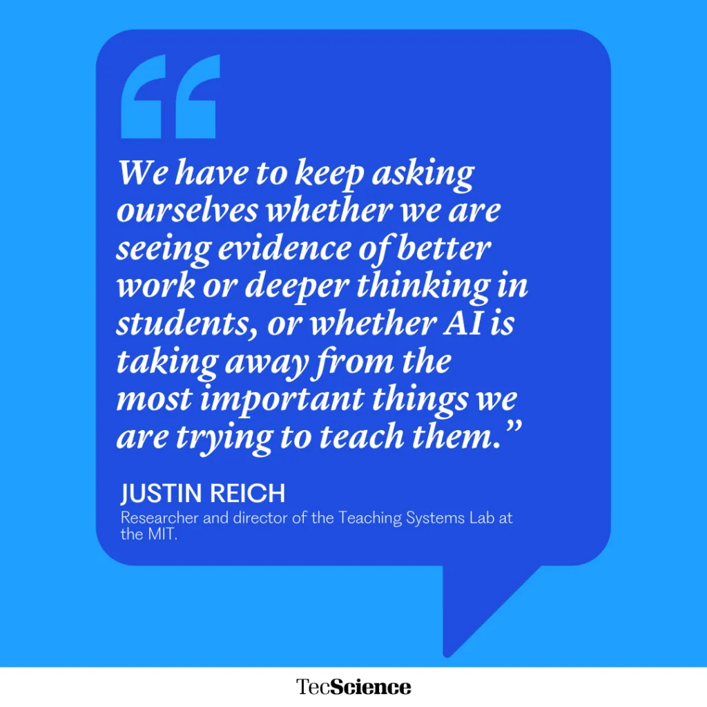 “We have to keep asking ourselves whether we are seeing evidence of better work or deeper thinking in students, or whether AI is taking away from the most important things we are trying to teach them.”