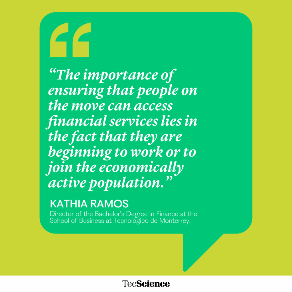 “The importance of ensuring that people on the move can access financial services lies in the fact that they are beginning to work or to join the economically active population,” explains Kathia Ramos, a research professor and director of the Bachelor’s Degree in Finance at the School of Business on the Monterrey campus.