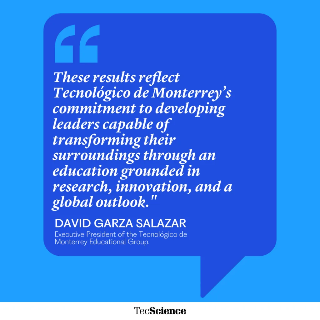 “These results reflect Tecnológico de Monterrey’s commitment to developing leaders capable of transforming their surroundings through an education grounded in research, innovation, and a global outlook. Our goal is to continue strengthening the institutions within our educational group, enabling our graduates to compete at the highest level and expand their impact in Mexico and around the world,” said David Garza Salazar, executive president of the Tecnológico de Monterrey Educational Group.