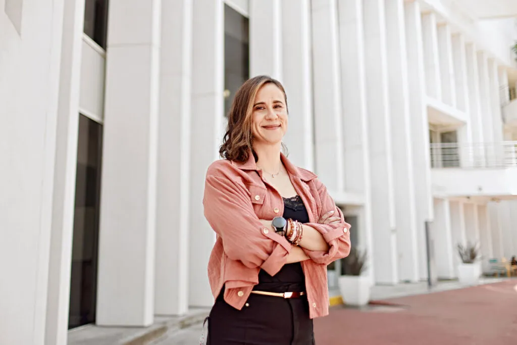 She holds a degree in Chemical Engineering and a PhD in Materials Science, and her work focuses on developing polymers with clinical applications: tackling antimicrobial resistance and helping chronic wounds heal. She ended up in this line of research —she admits as the interview kicks off— because it was the closest thing to what she originally wanted to study: cosmetology.