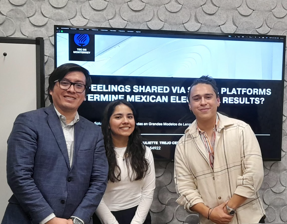The project was developed in collaboration with Tecnológico de Monterrey’s Digital Media Observatory (OMD), with support from Alejandro Martín del Campo, whose infrastructure made it possible to access real-time data from the public conversation. This interdisciplinary partnership reinforces the idea that understanding electoral behavior requires both technical expertise and social and human insight.