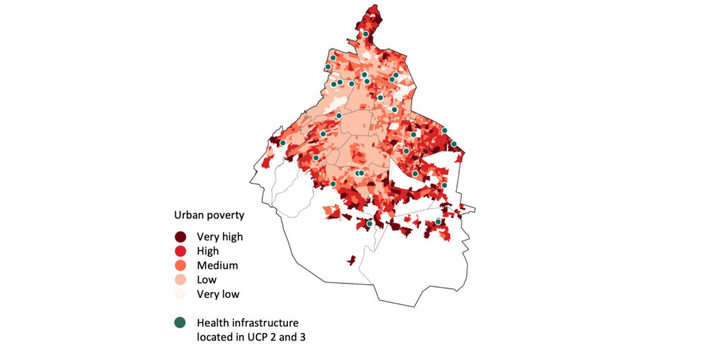 When these data are compared with poverty indicators, a clear correlation emerges between the placement of health facilities and areas with higher levels of urban poverty. Peripheral zones lack not only health services, but also other basic urban amenities, further worsening living conditions for their residents.