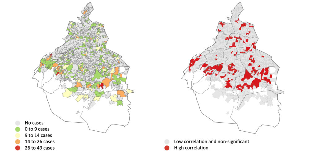 Using daily active-case data by neighborhood from the Respiratory Disease Surveillance System (SINAVE) of the Ministry of Health, researchers identified clusters of neighborhoods with a significantly higher proportion of active cases.