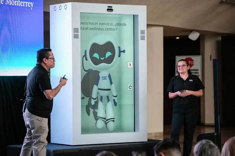 En el evento también se mostró una nueva versión de TECbot, el asistente virtual de la institución, que ahora tiene un diseño en 3D y que puede ofrecer atención a través de un sistema con efecto holográfico, que integra cámaras y reconocimiento de voz para dar servicio a la comunidad Tec.