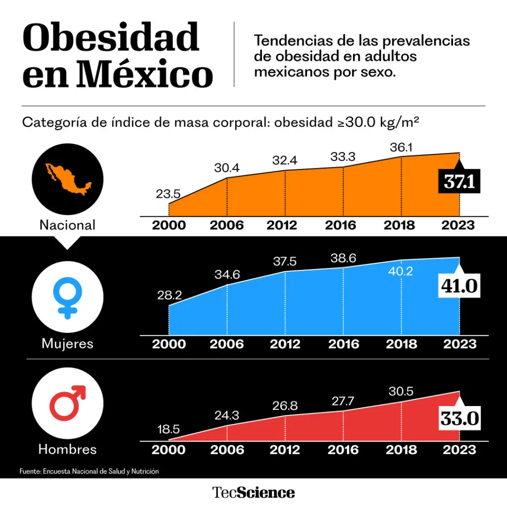 México está entre los primeros lugares del mundo en sobrepeso y obesidad infantil. En 2022, se reportó que el 37.3% de niños y el 41.1% de adolescentes están en esta condición, es decir, alrededor de 15 millones de menores, según la Encuesta Nacional de Salud y Nutrición (Ensanut).