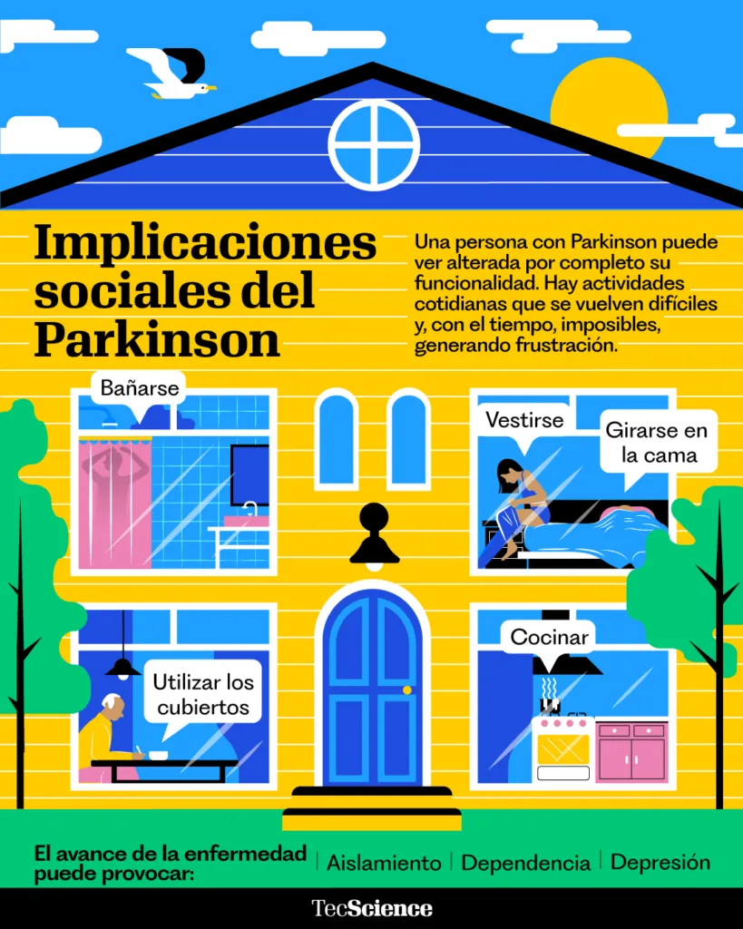 “Recordemos que este trastorno imposibilita por completo su actividad cotidiana, desde vestirse hasta comer. Actividades diarias que cada vez le toman más tiempo a quienes lo sufren, y que, según avanza la enfermedad, acaban por convertirse en una misión imposible”, señala el neurólogo y explica que, el curso del Parkinson en muchas ocasiones provoca que la persona se acabe aislando y entre en una depresión.