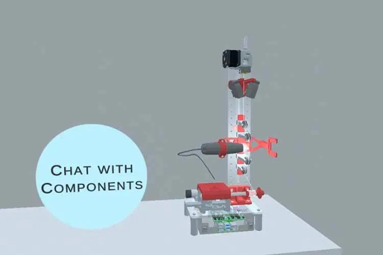 El espacio virtual funciona como una simulación de una planta industrial: con estaciones de trabajo y líneas de producción con brazos robóticos, que los estudiantes pueden recorrer para interactuar con la maquinaria y ajustar variables que impactan en el funcionamiento de la fábrica y de la cadena de suministro. Es decir, simulan el proceso, recopilan datos operativos y los usan para optimizar la línea de producción.