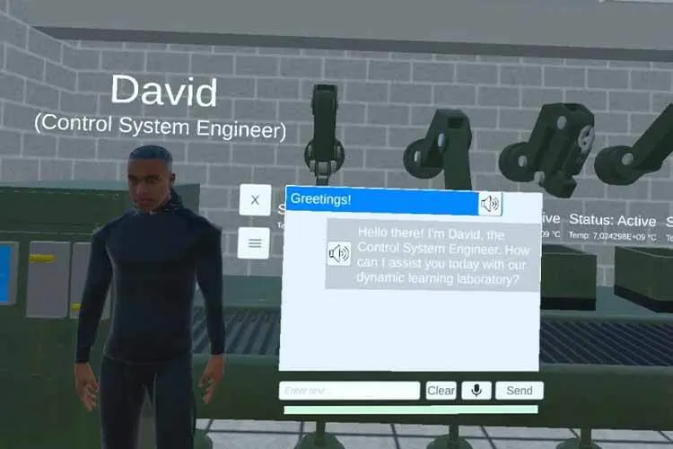 La interacción con estos expertos virtuales se puede realizar a través de texto y por voz, dependiendo de las capacidades del dispositivo que utiliza el usuario para interactuar con la plataforma —ya sea un visor de realidad virtual, tablet o celular— y, también, de la configuración del laboratorio.